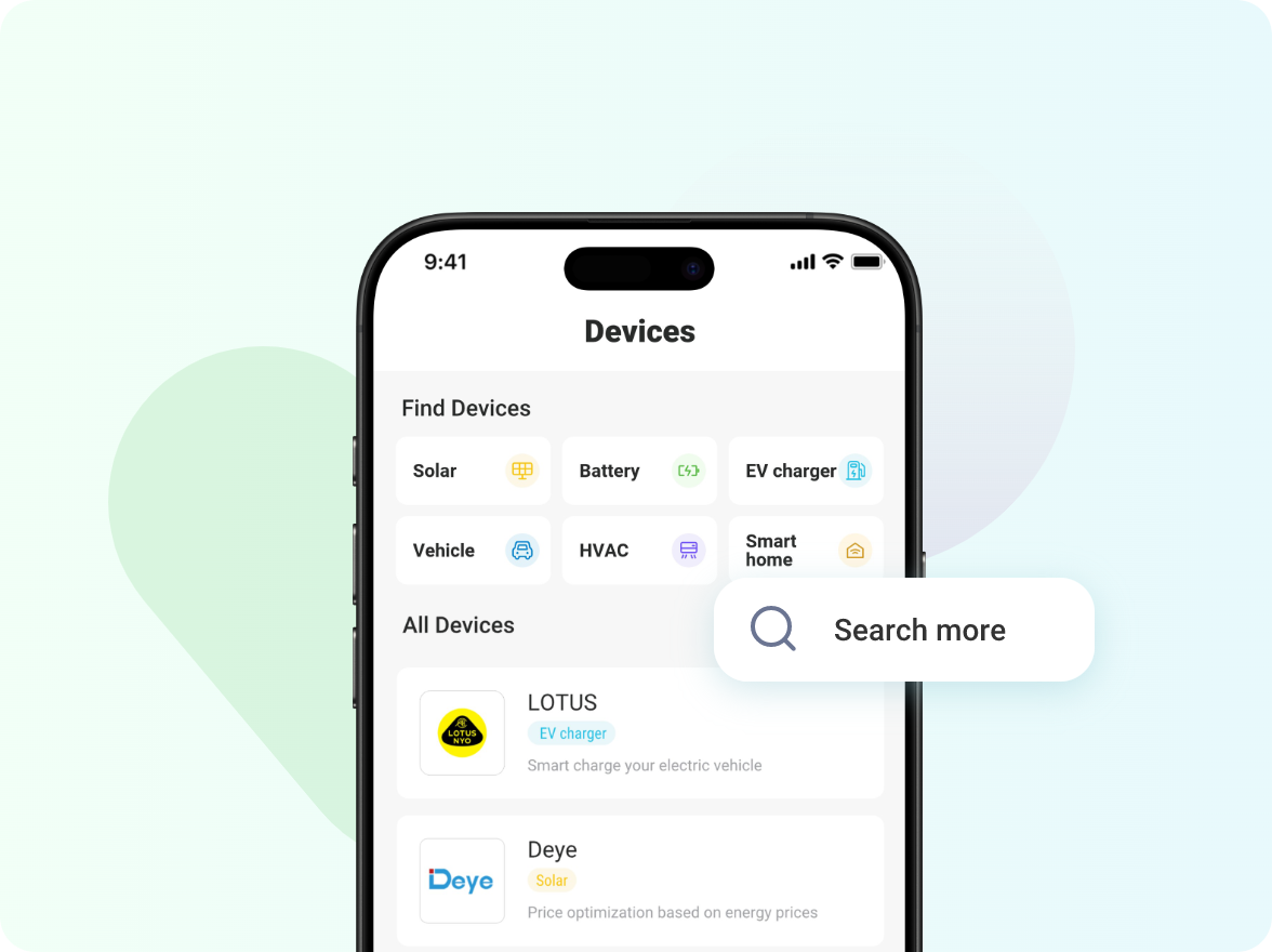 Greifen Sie nahtlos auf dynamische Strompreise zu und optimieren Sie Ihren Energieverbrauch, um Ihre Energiekosten zu senken. Maximieren Sie außerdem Ihre Gewinne, indem Sie ein Heimbatteriesystem integrieren, um günstig einzukaufen und teuer zu verkaufen.