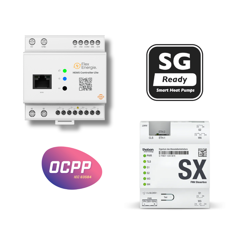 Die Flex Steuererbox Lite ist die perfekte Lösung für Installateure und Kunden, um alle Geräte zu verwalten, die unter die Norm 14a fallen.